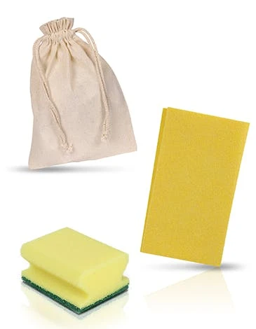 Inhalt: Die Bestellung umfasst 30 Reinigungssets. Jede Packung enthält: 1 gelben Putzlappen, 1 gelben Putzschwamm, 1 Flasche Geschirrspülmittel 30ml, 1 Spülmaschinentab, 1 Waschmaschinentab & 1 Mülltüte.