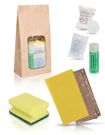 Inhalt: Die Bestellung umfasst 42 Reinigungssets. Jede Packung enthält: 1 gelben Putzlappen, 1 blauen Putzschwamm (zerkratzt nicht), 1 Flasche Geschirrspüler 30ml & 1 Mülltüte.