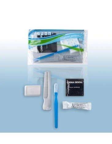 Set 2 Vintage Badewanne, bestehend aus: Zahnbürste, Zahnpasta im Sachet, Eau de Cologne, 2x Duschgel und Shampoo 2in1 15ml., Kamm, Handseife, Duschhaube und Taschenücher. 4 verschiedene Badewannen-Motive (gemischt).